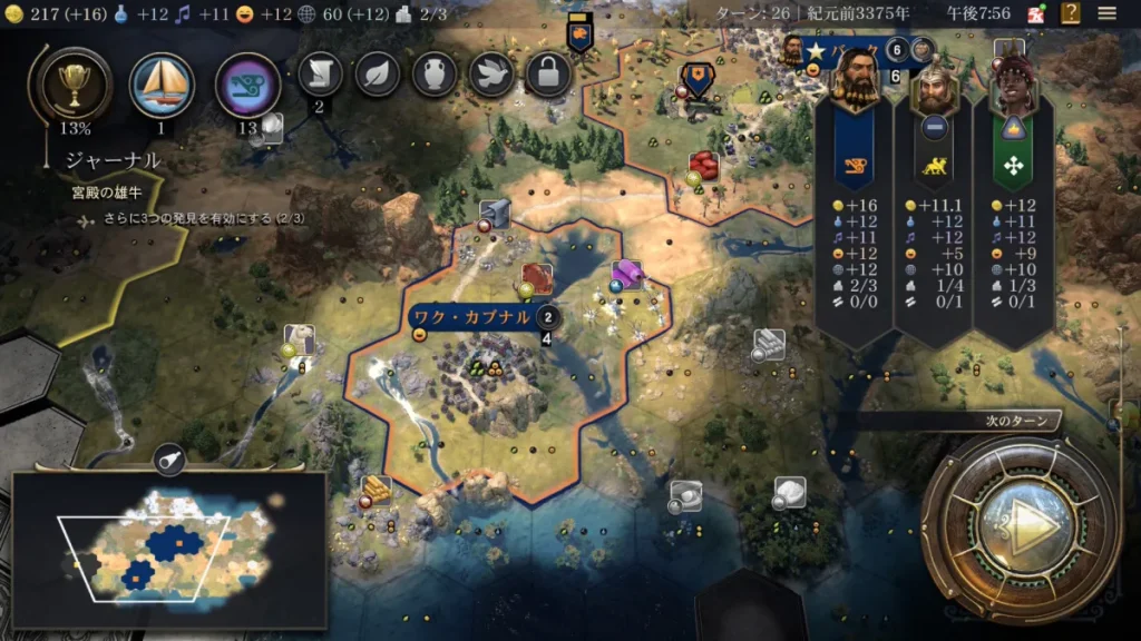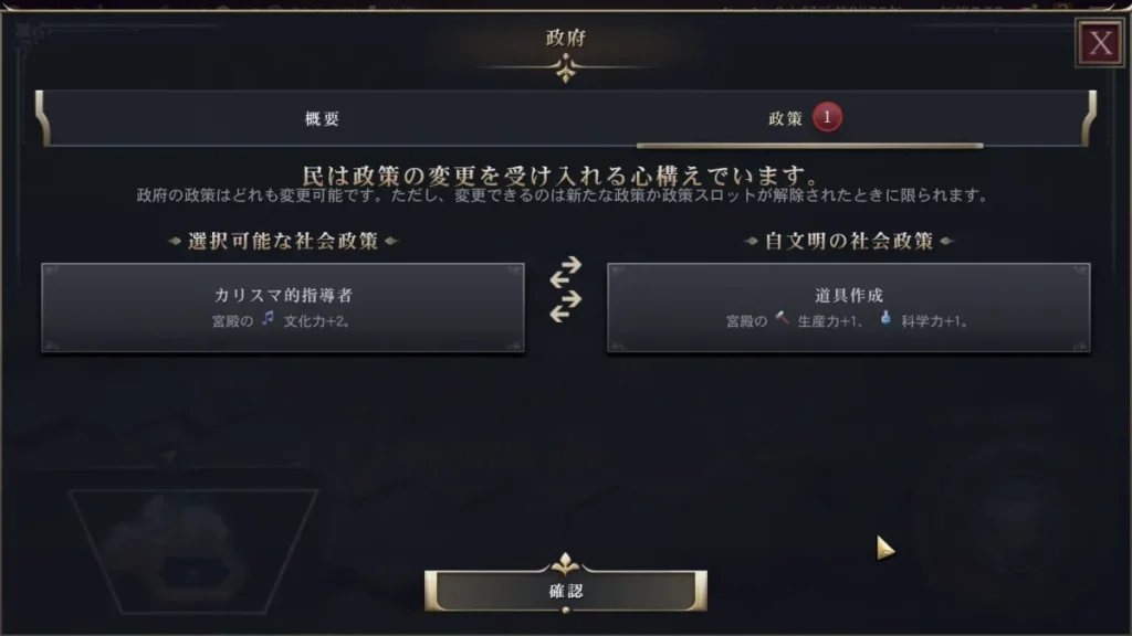 6ターン目くらいになると首長制の社会制度が完了するので政府が選べるようになります。