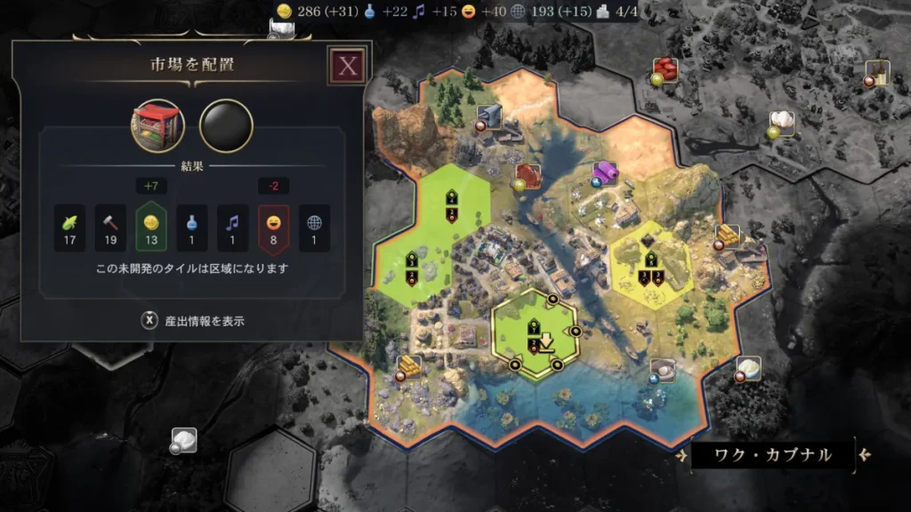 資源は文明にとって様々なブーストをしてくれるので基本的には取った方が良いです(あまり効果の無いものもありますが)。 資源は、「帝国資源」「都市資源」「ボーナス資源」の3種類があります。