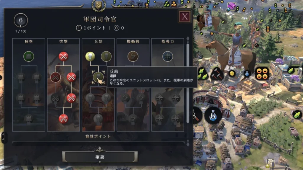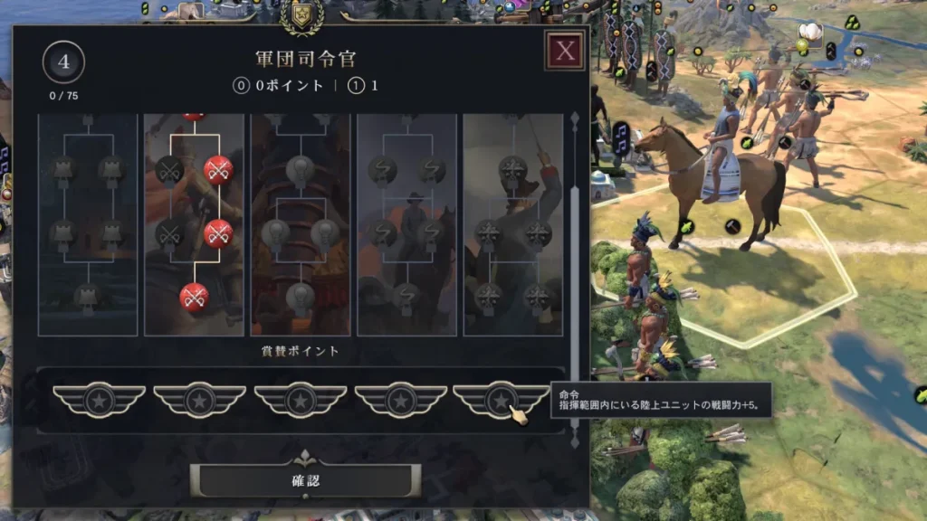 Civ7では戦闘ユニットにはレベルという概念がありません。 ただ、「軍団司令官」というユニットに関してはレベルの概念があります