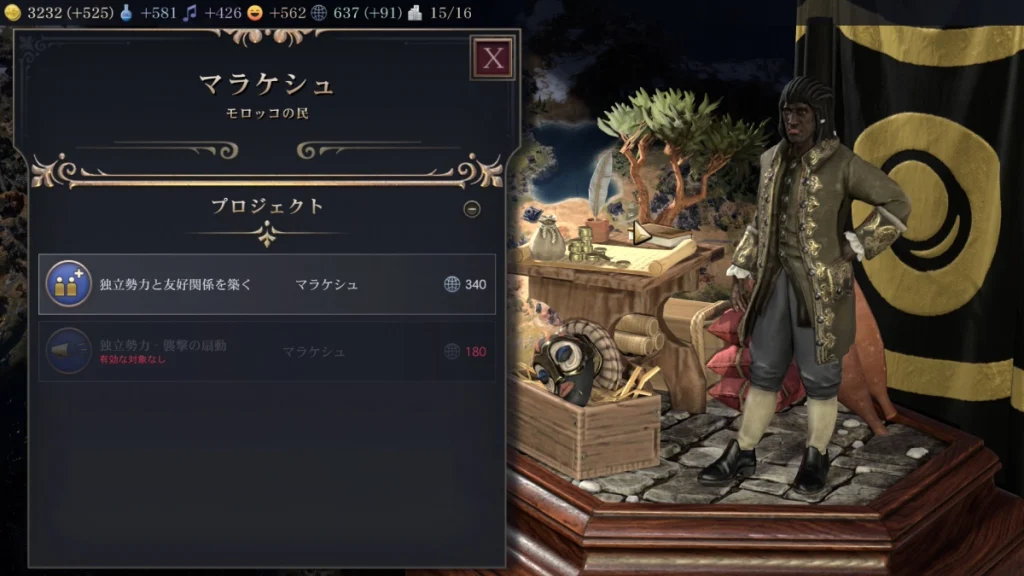 科学系の独立勢力の宗主国になると「専業建築家」というものが宗主国ボーナスで選択することができます。 書いてあるとおりですが「プロジェクトの完了に対する生産力+25%」というのがかなり大きいので科学系の独立勢力があれば最優先で友好関係を結んで行くと良いです。