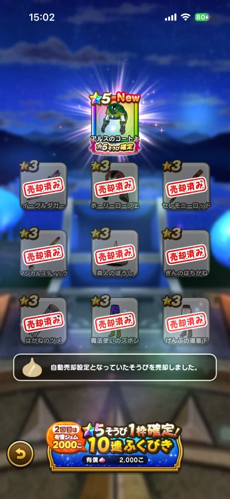 今回はドラクエVIIのReWALKということで、ガチャも新しいものが実装されました。 ということで早速有償ガチャを引いてみると、